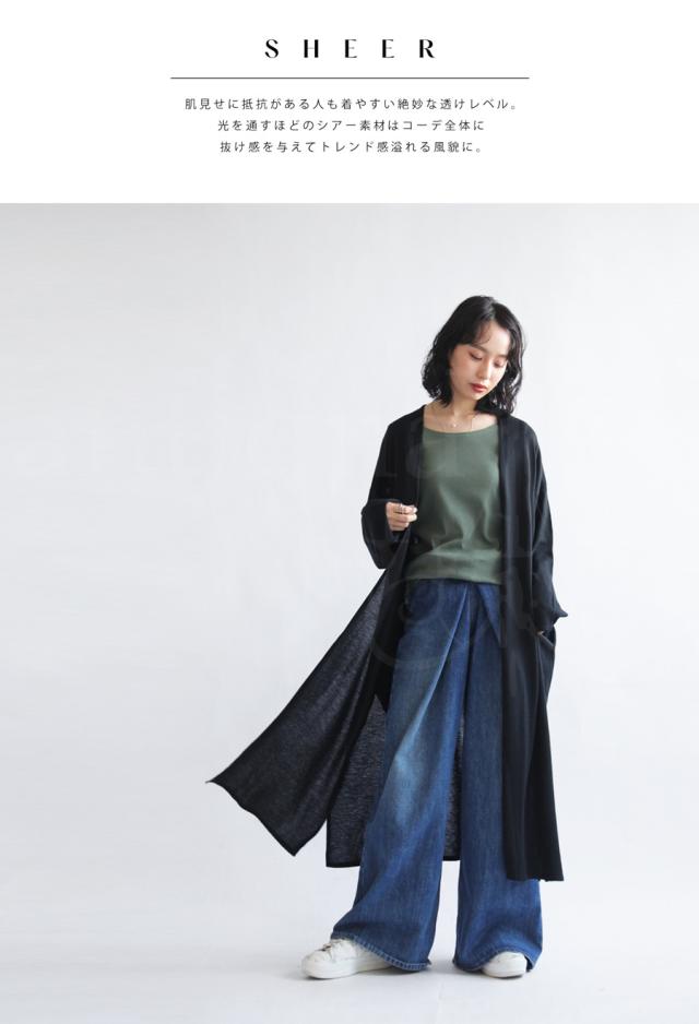 さりげない透け感がコーデを爽やかに軽い印象に仕上げてくれる夏も使えるカーディガン。