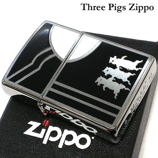 ZIPPO スリーピッグス ジッポ ライター おしゃれ ブラック 三匹の子豚 シルバー レトロ かっこいい 可愛い メンズ ギフト プレゼント