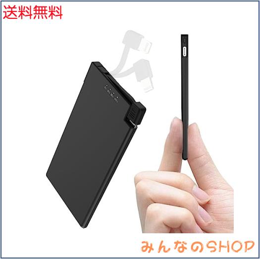 TNTOR モバイルバッテリー 軽量 小型 超薄 6.8mm 5000mAh ケーブル内蔵 ios対応 スマホ充電器 iPhone 14/14 Pro max/13/13 Pro/13 Mini/1