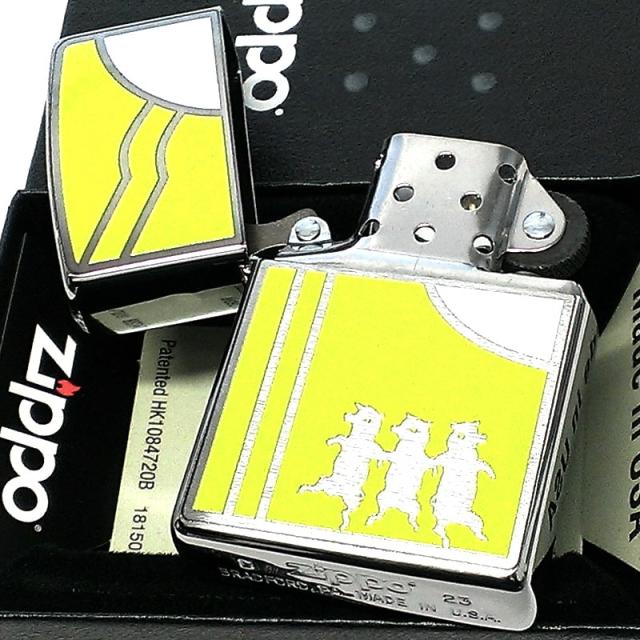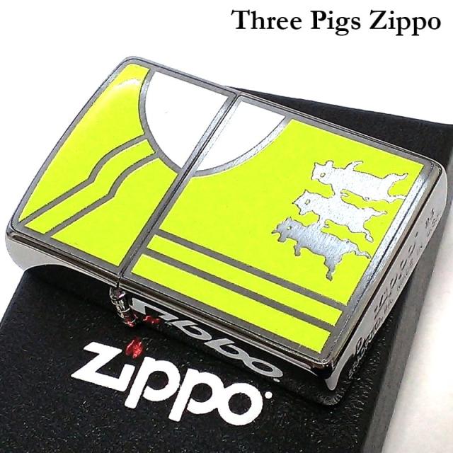 ZIPPO ライター おしゃれ スリーピッグス ジッポ イエロー 三匹の子豚 シルバー 黄色 レトロ かっこいい 可愛い メンズ ギフト