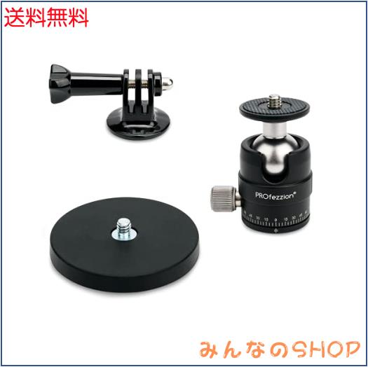 PROfezzion カメラ磁気スタンド セット カメラ用 マグネット スタンド + 雲台 + Goproホルダー マグネットベース 小型 自由雲台 360°回
