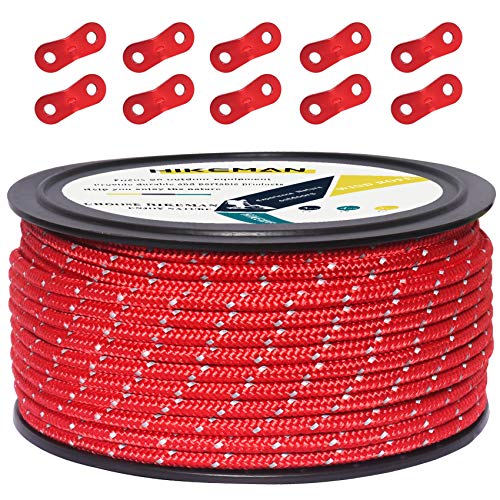 【Amazon限定ブランド】テントロープ ガイロープ 4mm 反射 パラコード タープロープ ガイライン 自在金具付き 50M/30M アルミ自在金具 ボ