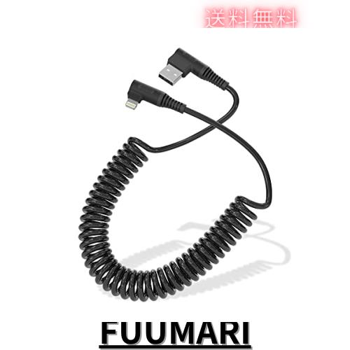 Lightningケーブル L型 carplay対応 MFi認証 充電 l字 カール ライトニングケーブル 90度 2.4A データ伝送 カールコード usb 高耐久 伸縮