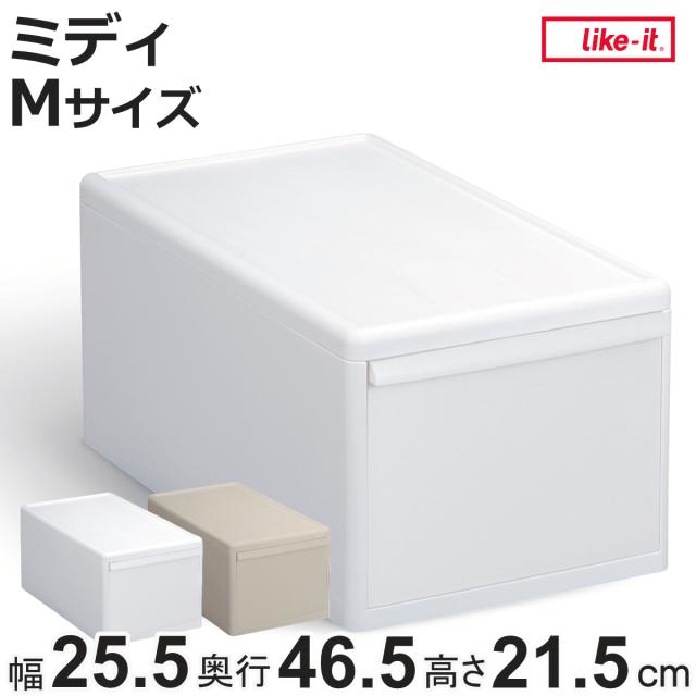 収納ケース ミディ M 幅25.5×奥行46.5×高さ21.5 ( MOS 収納ボックス プラスチック 引き出し 収納 ケース ボックス 日本製 クローゼット スタッキング ジョイント 押入れ収納 キッチン 洗面所 おもちゃ 衣類 白 ベージュ )