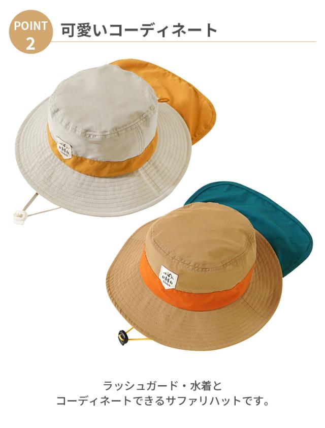【特徴】ラッシュガード・水着とコーディネートできるサファリハットです。紫外線遮蔽率94%。