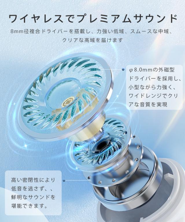 【2025最新モデル】ワイヤレスイヤホン Bluetooth イヤホン HiFi高音質 瞬時接続 自動接続 AACコーデック 軽量 マイク内蔵 片耳 両耳 ブルートゥース 残量表示 Siri対応 iPhone/Android 旅行/出張 ヘッドホン 防水 高音質 プレゼント Bluetooth5.3