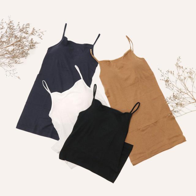 人気のブラパットキャミソールのストレートネックタイプ。少し透け感のあるお洋服を着用する際にも安心のデザインです。光沢のあるテープは襟元からのぞいても上品で違和感がなく、カーディガンやシャツの下に直接着用する際も上品に着こなしていただけます。胸のパットは取り外し可能でお洗濯時も便利。また、オリジナルパッケージ入りなので、ちょっとしたギフトにも最適です。サイズをお選びいただく際は、基本的に普段着用されているお洋服と同じサイズをお勧めしております。