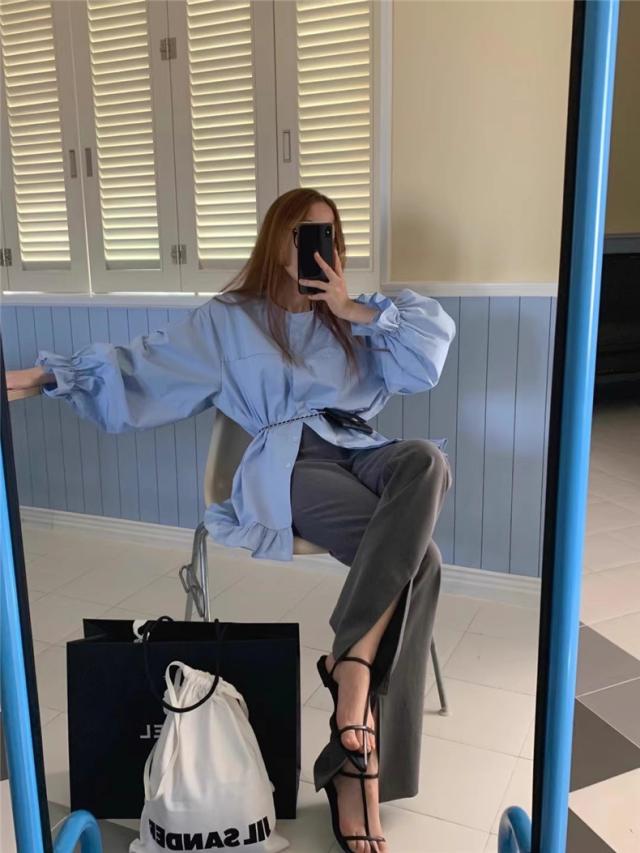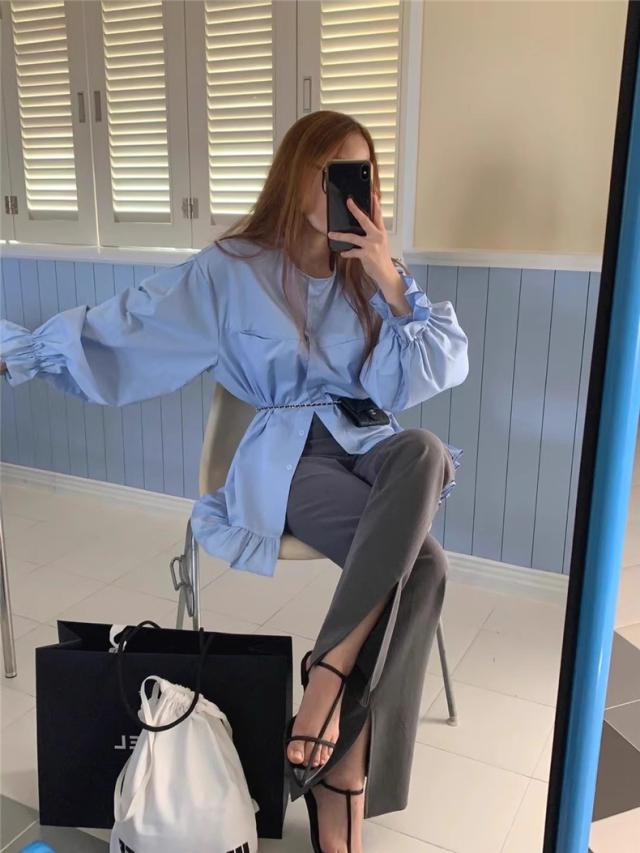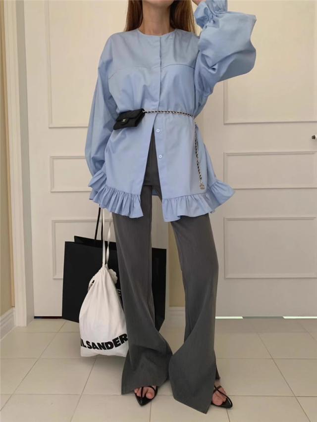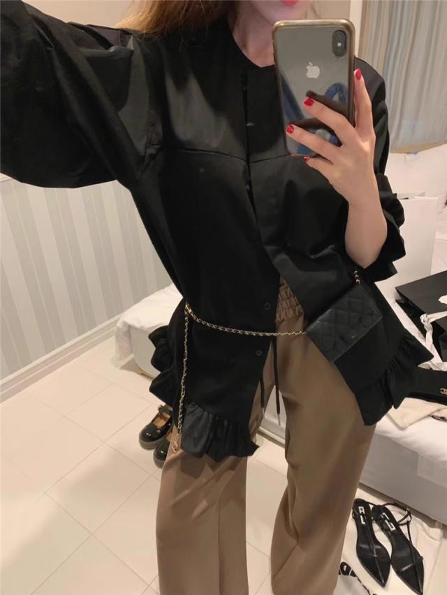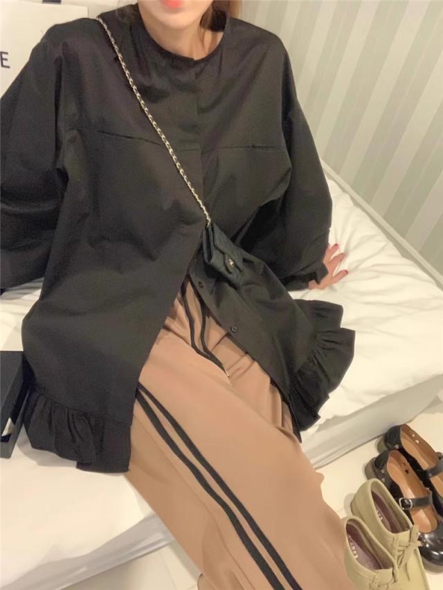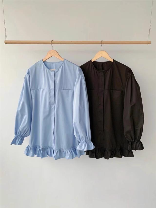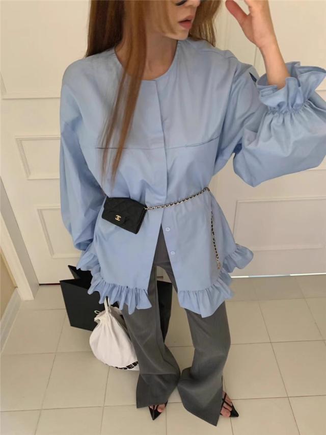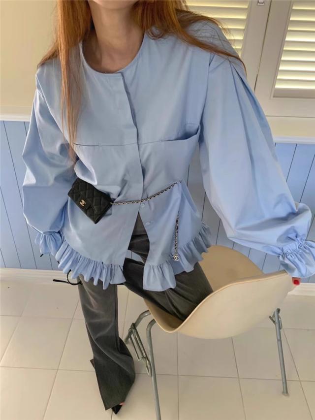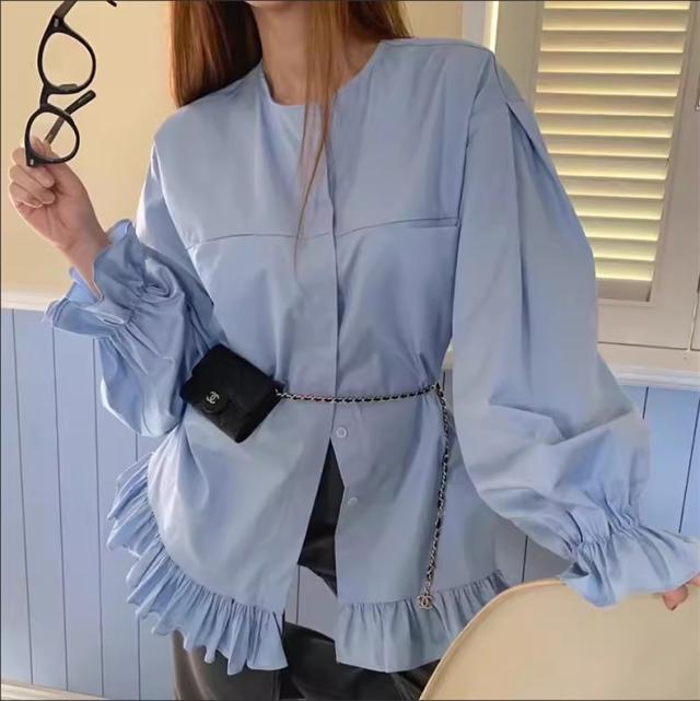ブラウス 春シャツ レディース 長袖 フリル 綿100% 大きいサイズ 体型カバー フリル ギャザーブラウス カジュアル派さんに人気 爽やかさと女性らしさGOOD