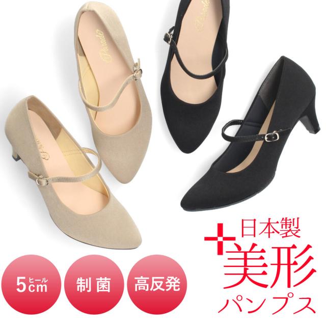 パンプス 痛くない 歩きやすい 走れる ローヒール ストラップ 黒 オフィス 靴 レディース 日本製 ブラック 高反発 パーティ 美形パンプス Parade 5501