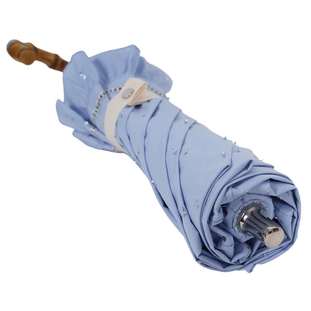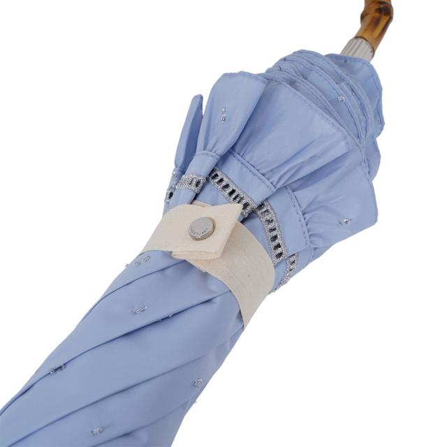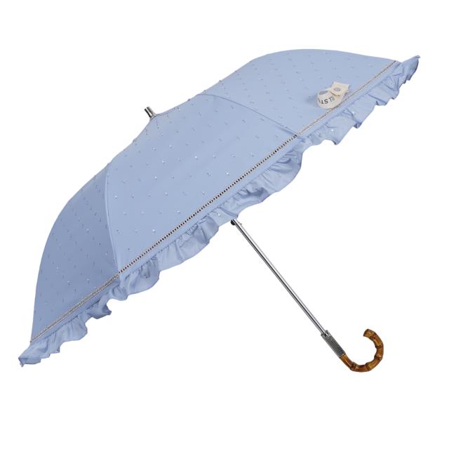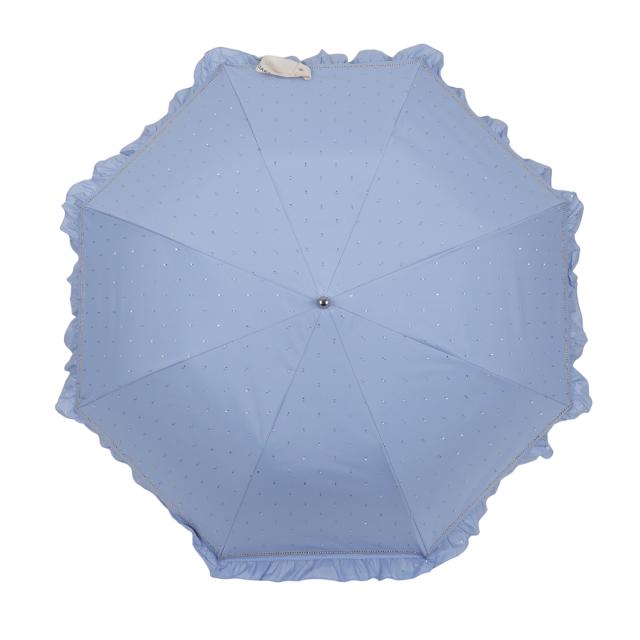 フリルとラメがかわいい「JILL STUART」の晴雨兼用パラソルです。持ち運びに便利で、開閉のしやすいトップフラットタイプです。手動で開閉し、遮光率、UV遮蔽率ともに99%以上で紫外線対策にも。少量の雨の日でも使えるので突然の悪天候にも対応できるアイテムです。
