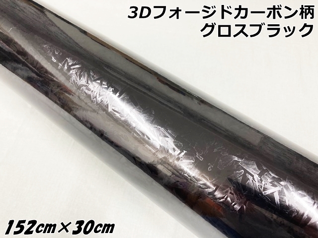 3Dフォージドカーボン調シート 152cm×30cm グロスブラック カーラッピングシート 艶あり黒 マーブルカーボン柄 保護フィルム付 カーラップフィルム