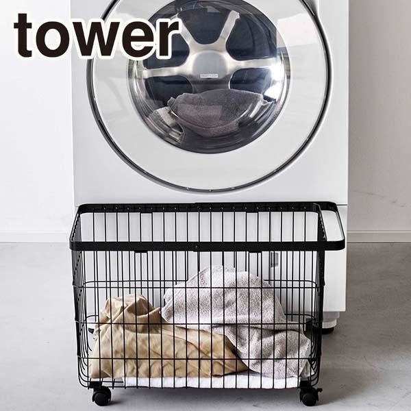 tower ランドリーバスケットキャスター付き ブラック 6628 送料無料 ランドリーバスケット 洗濯カゴ キャスター付き 可動式 ハンドル付き