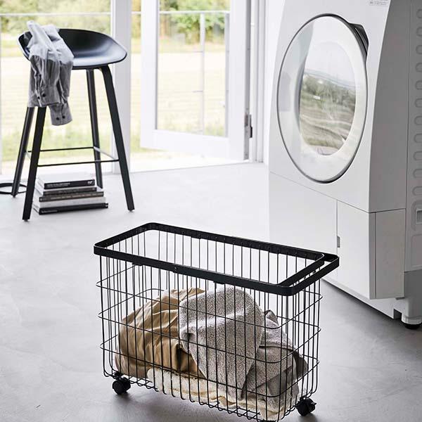 洗濯機の幅に合うワイドなキャスター付きランドリーバスケット