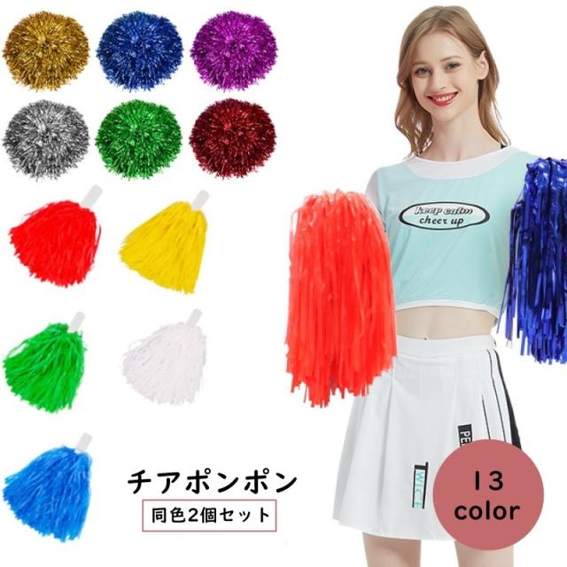 チアポンポン 2個セット チアリーダー チアリーディング イベント用品 パーティーグッズ 持ち手付き 応援 ダンス 運動会 体育