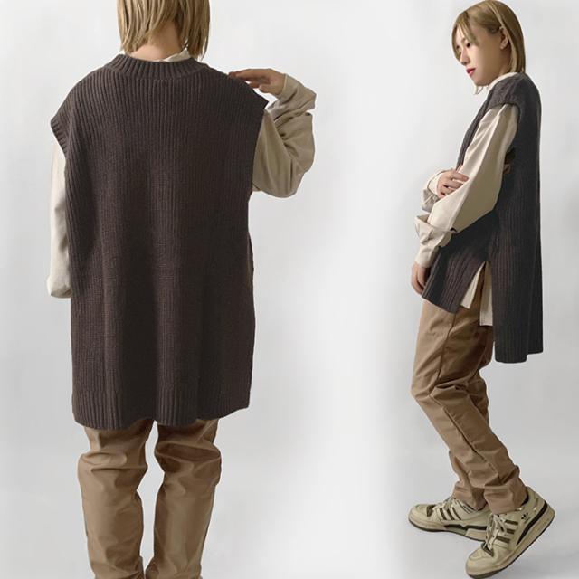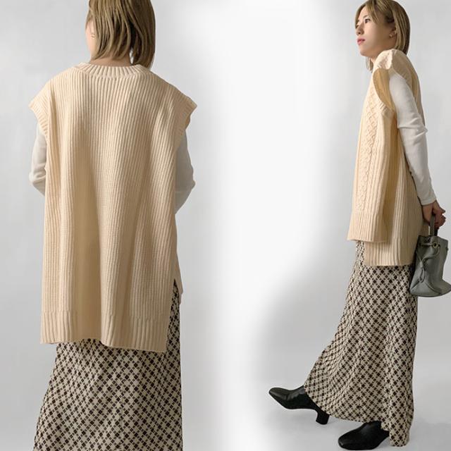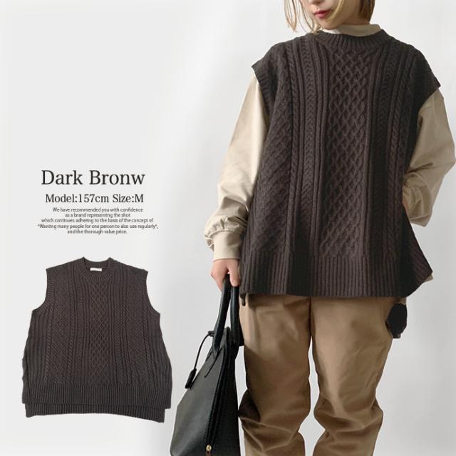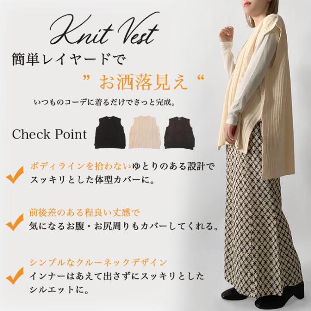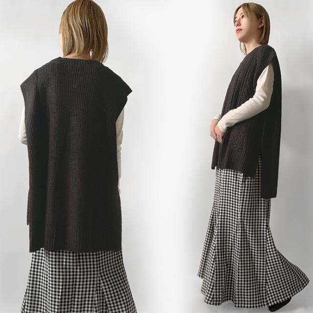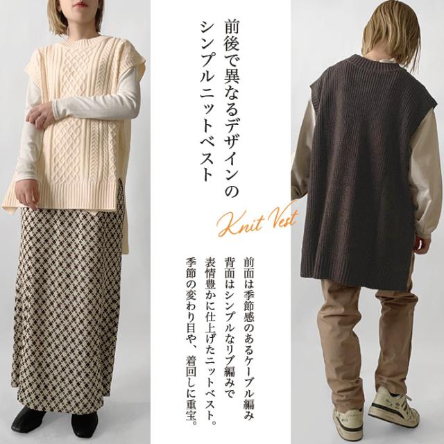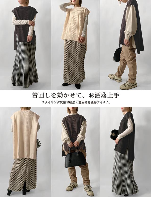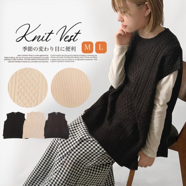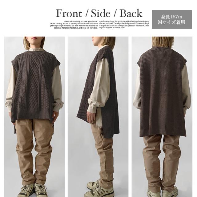 ベスト ニットベスト ノースリーブ ケーブル編み リブ編み セーター 重ね着 レイヤード クルーネック ゆったり レディース 送料無料