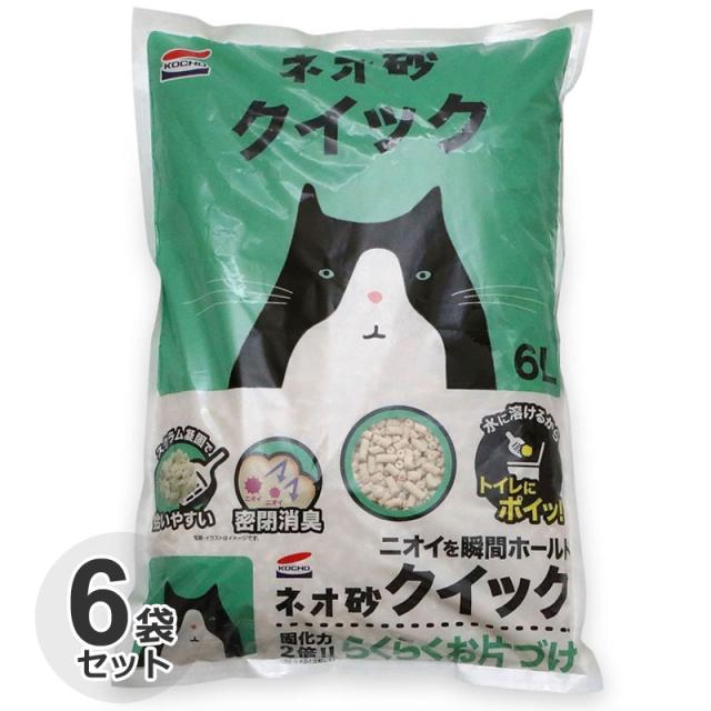 ケース / 国産 コーチョー ネオ砂 クイック 6L x 6袋 猫砂 ネコ砂 オカラ 消臭 固まる 燃やせる トイレに流せる サンド リター 箱 業務用