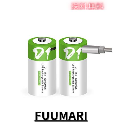 ◆商品名:SMARTOOOLS単1形USB充電式リチウム電池1.5V定出力12000mWhDセル(USB Cケーブル付き)4H急速充電電池(単1形充電池 x 2個)