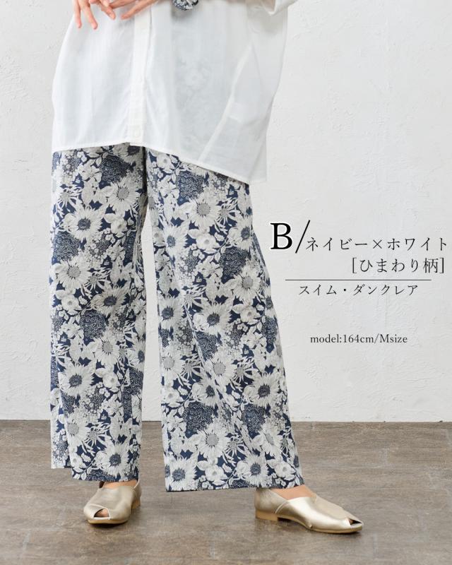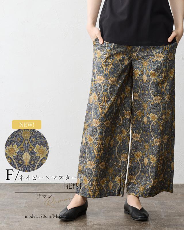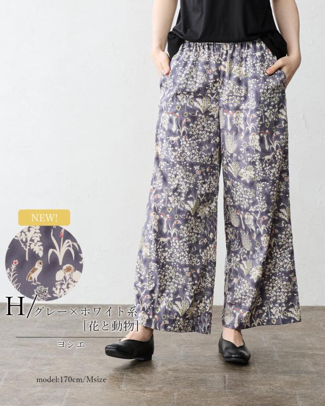 リバティ LIBERTY ワイドパンツ 日本製 花柄 フラワー 草花 ボタニカル プリント 綿100% コットン 綿 フレアパンツ ロングパンツ 10分丈 ガウチョ ファッション レディース 女性 フォーマル お出かけ 春 冬 秋 ボトムス カジュアル リバティ生地 4130923