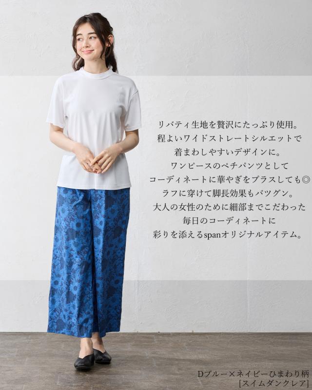 ワイドパンツ フレアパンツ スカーチョ ガウチョ ガウチョパンツ ロングパンツ フルレングス 10分丈 綿 綿100% コットン コットン100% タナローン リバティ生地 リバティプリント LIBERTY リバティ リバティー 花柄 草花 植物 フラワー ボタニカル 総柄 シンプル きれいめ フェミニン マリア スイムダンクレア レイラ 春 夏 秋 冬 婦人服 女性 服 レディースファッション ファッション 人気 通販 日本製 SPAN スパン 母の日 誕生日 敬老の日 クリスマス バースデー ギフト プレゼント ラッピング 贈り物
