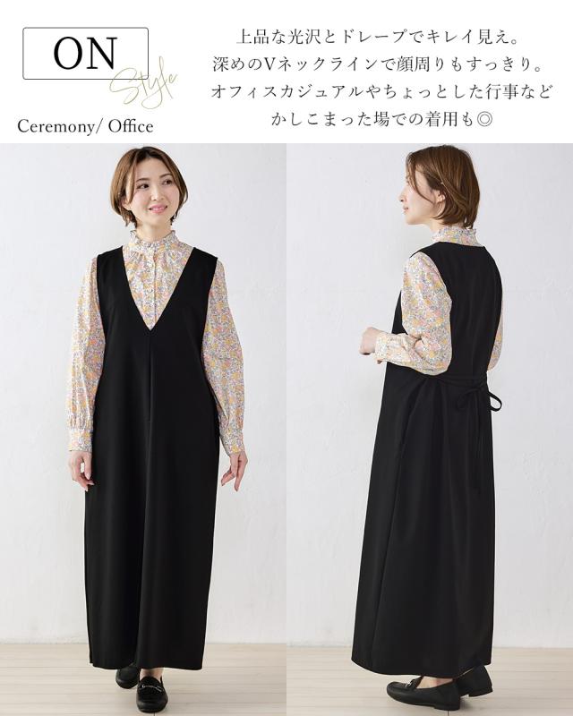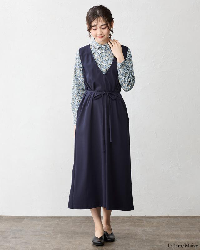 強撚コットン ジャンパースカート 綿100% キレイ見え 日本製 レディース きれいめ 上品 ジャンスカ レイヤードワンピース ノースリーブワンピース レイヤード 重ね着 M/L 大きいサイズ フォーマル セミフォーマル 大人カジュアル カジュアル 4140933