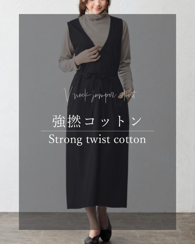 綿100%とは思えない上質感を生み出す着心地の良い強撚コットンを使用したジャンパースカート。