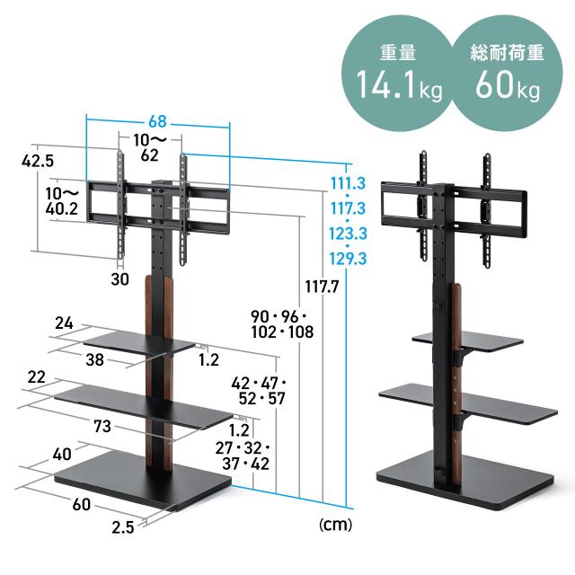 ●小型サウンドバーや各種プレーヤー、ゲーム機などの設置に便利な、棚板が装備されています。