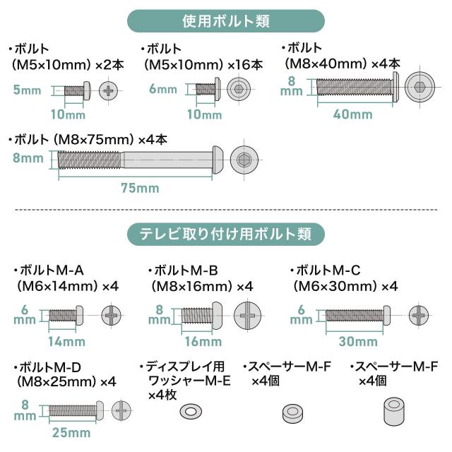 ■付属品:ディスプレイ取付けねじ(M6×14、M8×16、M6×30、M8×35)各4本