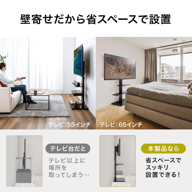壁寄せテレビスタンド ハイタイプ 32インチ/42インチ/55インチ/65インチ対応 スチール製 天然木使用 サウンドバースピーカー用棚板付[100-PL034M]