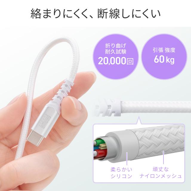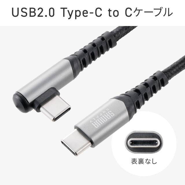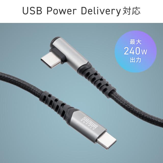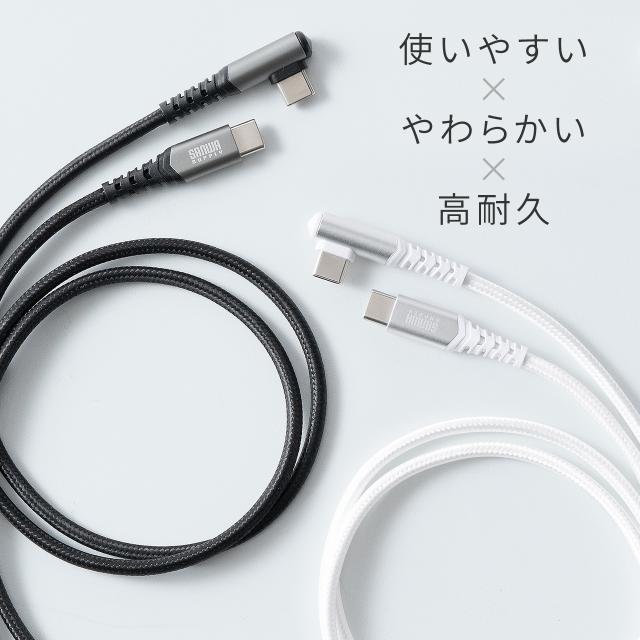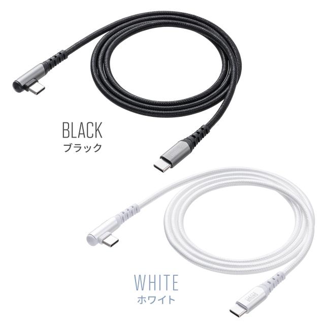 USB Type-Cケーブル L字 USB PD240W シリコンメッシュ 絡まない CtoC タイプC USB2.0 充電 データ転送 スマホ タブレット 1m ブラック ホワイト[500-USB080]