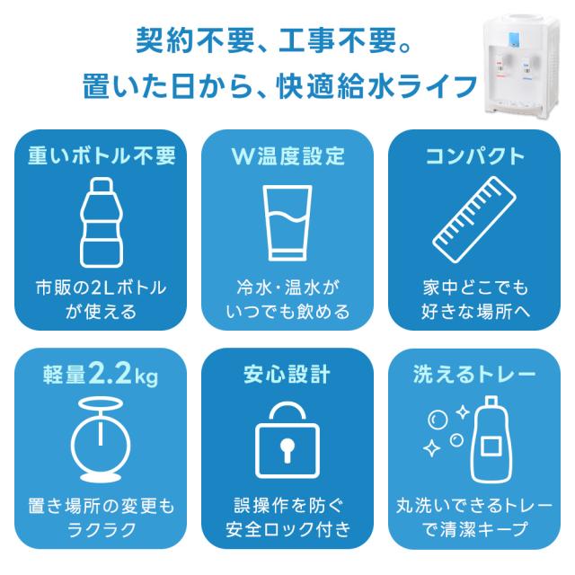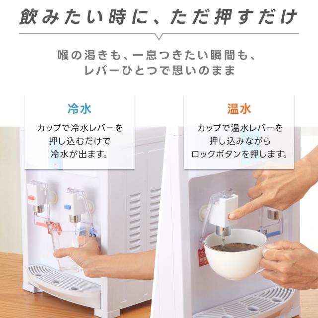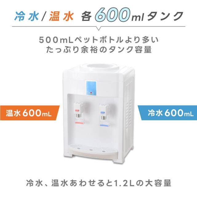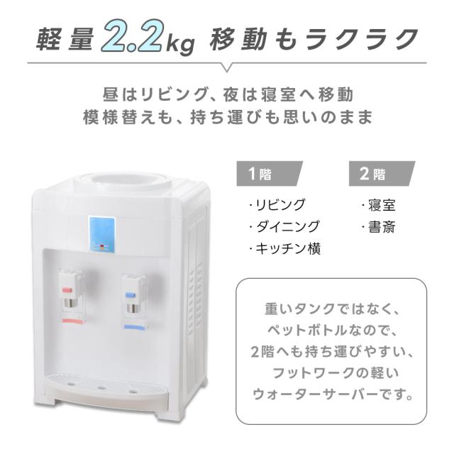卓上ウォーターサーバー ペットボトル対応 冷水・温水対応 2Lペットボトル対応 コンパクト 軽量 室内専用 給水機 翌日配送