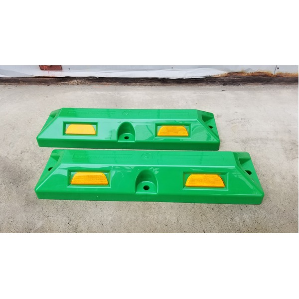 環境に優しいリサイクルプラスチック製車止めセット 緑色の高さ80mmで安全 性も抜群 反射プレート付きで夜間も安心 取り付けも簡単なスクリューアンカーセット付き リサイクル車止め/パーキングストップ2本セット 【高さ80mm 緑色】 反射プレート付き スクリューアンカーセット