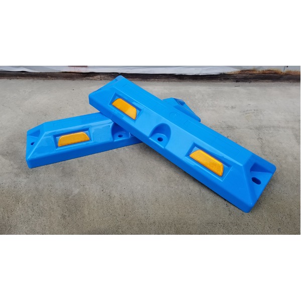 環境に優しいリサイクルプラスチック製の車止め12本セット 高さ80mmの青色で、反射プレートも付いています 取り付けも簡単なスクリューアンカーセット付きで安心 安全 道路や駐車場での車両誘導に最適 リサイクル車止め/パーキングストップ12本セット 【高さ80mm 青色】 反射プレート付き スクリューアンカーセット