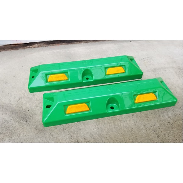 環境に優しいリサイクルプラスチック製車止め12本セット 緑色の高さ80mmで、反射プレート付きのスクリューアンカーセットも付属 持続可能な選択肢で駐車場を整備しましょう リサイクル車止め/パーキングストップ12本セット 【高さ80mm 緑色】 反射プレート付き スクリューアンカーセット