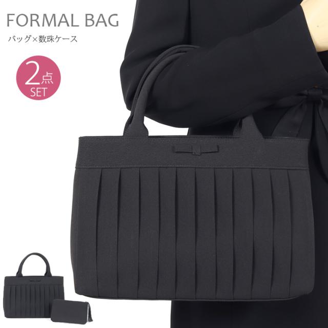 ブラックフォーマル バッグ 大きめ 2点セット フォーマルバッグ 大きいサイズ 大きめサイズ 6885 喪服 バッグ レディース 冠婚葬祭 バッグ フォーマルバッグ 黒 フォーマル バッグ ブラック 葬儀 弔事 葬式 卒業式 慶弔両用 数珠袋 可愛い プリーツ リボン