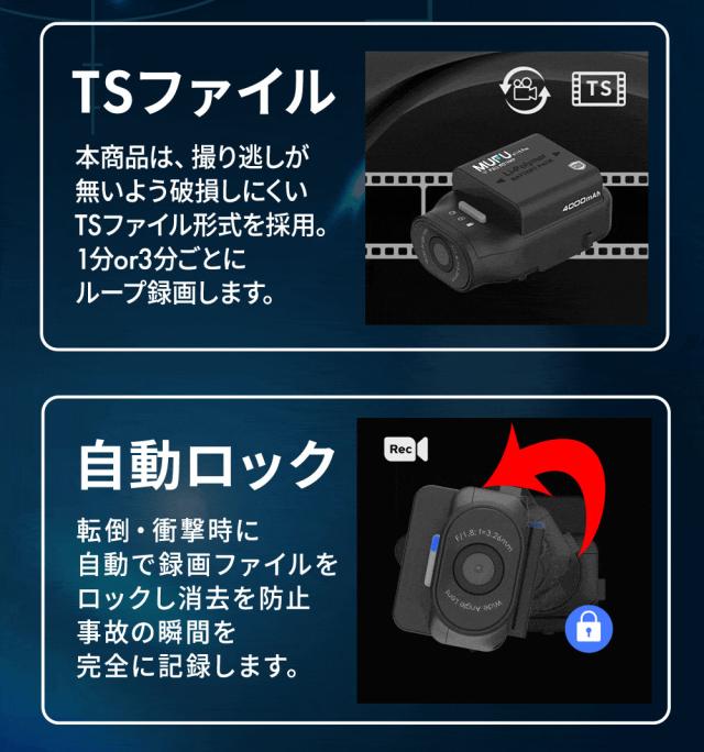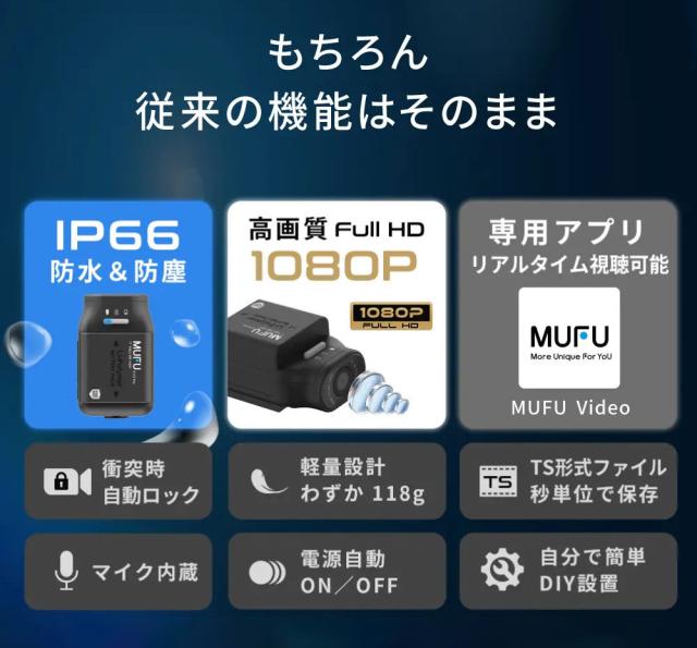 ドライブレコーダー バイク バッテリー 最大16時間使用可 ヘルメット WiFi フルHD 防水 防塵 MAXWIN MUFU MF-BDVR003-PRO