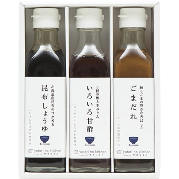 ゆとりのキッチン 料理家 栗原はるみ監修 しょうゆ ごまだれ 甘酢こだわり 調味料 ギフトセット 醤油 毎日 食事 習慣 食卓 健康 内祝い ギフト 出産 結婚 快気 プレゼント お気軽 友達 同僚 親戚 上司 お供え 日持ち 弔事 法事 香典返し 法要 詰合わせ 贈り物 [3本セット]