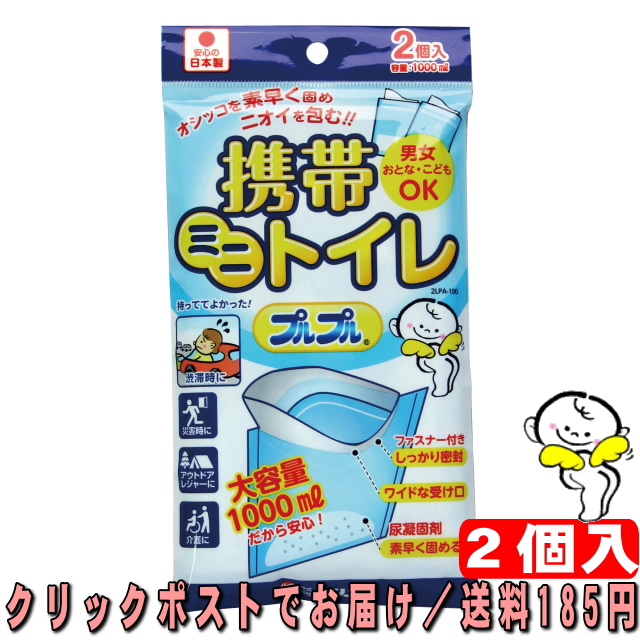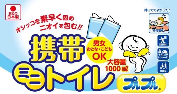 ケンユー 携帯ミニトイレ プルプル 大容量1000ml 2個入 オシッコを素早く固めニオイを包む 男女おとな・こどもOK