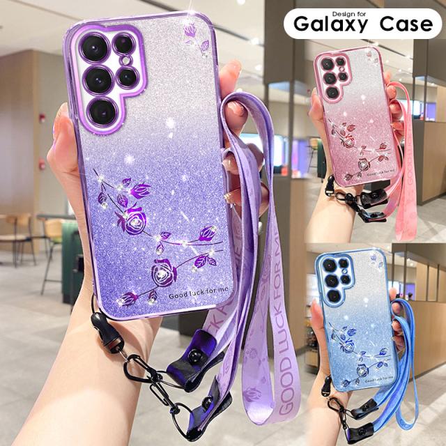 スマホショルダー galaxy s24 ケース 花柄 キラキラ スマホケース galaxy s24 ultra ギャラクシー s24 galaxy s23 s23 ultra s22 s22 ultra s21 s21+ s20 s20+ スマホケース 耐衝撃 キラキラ ケース カバー 可愛い 韓国 大人女子 上品 女性 背面透明 2WAY シンプル 花柄 ケース 男女兼用