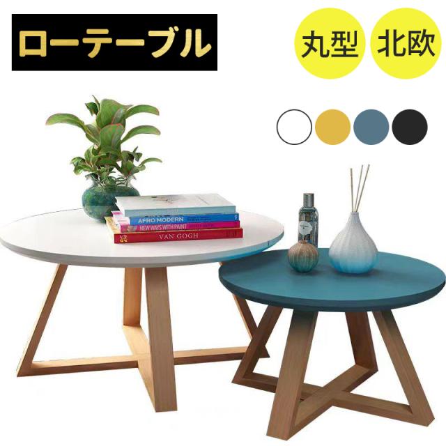 テーブル サイドテーブル 丸型 丸 パイン 食卓 木目 北欧 ローテーブル 丸 ホワイトのリビングルーム用ラウンドコーヒーテーブル