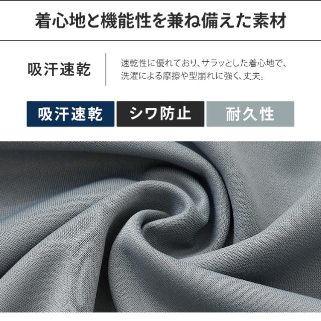速乾性に優れており、サラッとした着心地で、洗濯による摩擦や型崩れに強く、丈夫。