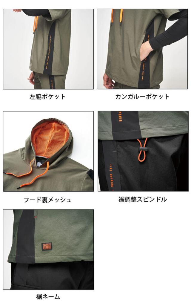 作業服 HUMMER ハマー レヴスキンズ半袖フーディー 28559 アタックベース 春夏 S〜3Lサイズ