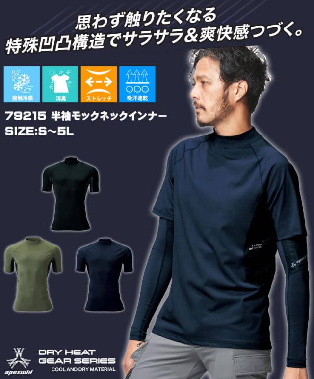 インナー アタックベース ATACK BASE 半袖モックネックインナー 79215 作業服 春夏 APEXWIN S〜3Lサイズ