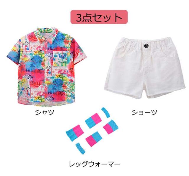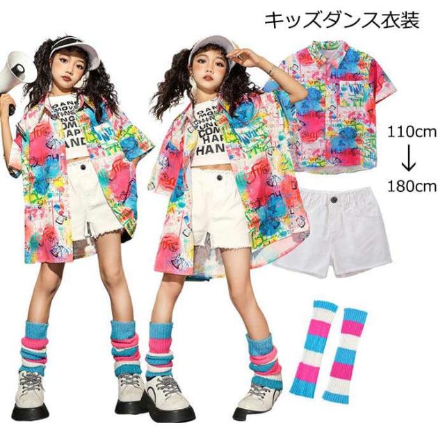 商品名:キッズダンス衣装 女の子 セットアップ ヒップホップ キッズダンス ストリート ダンスウェア hiphop jazz 原宿系 演出服 団体服 応援団 イベント衣装 おしゃれ 半袖 レッスン 子供服 シャツ レッグウォーマー ショーツ110cm 120cm 130cm 140cm 150cm 160cm 170cm 180cm