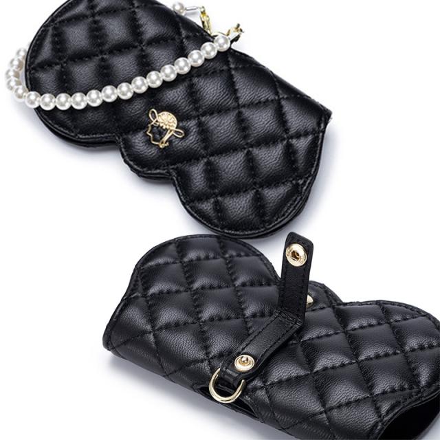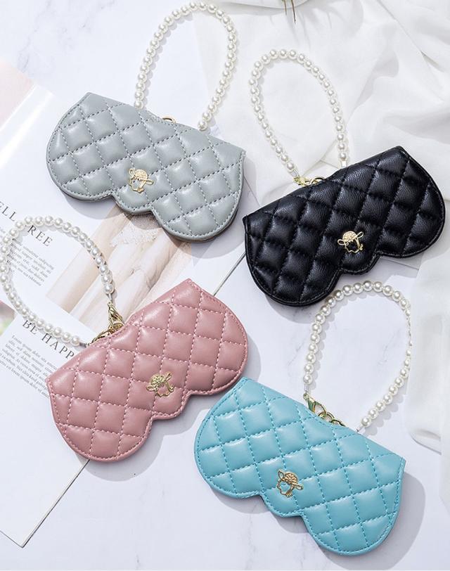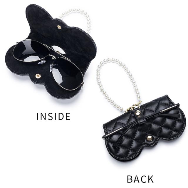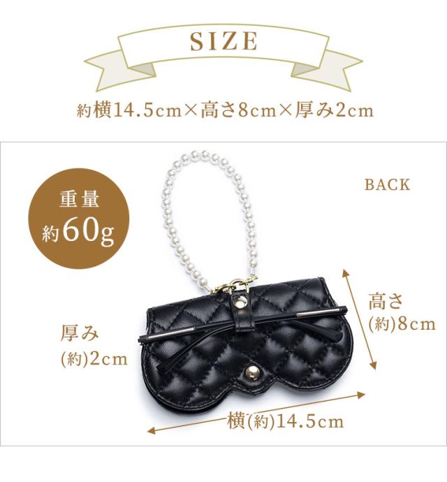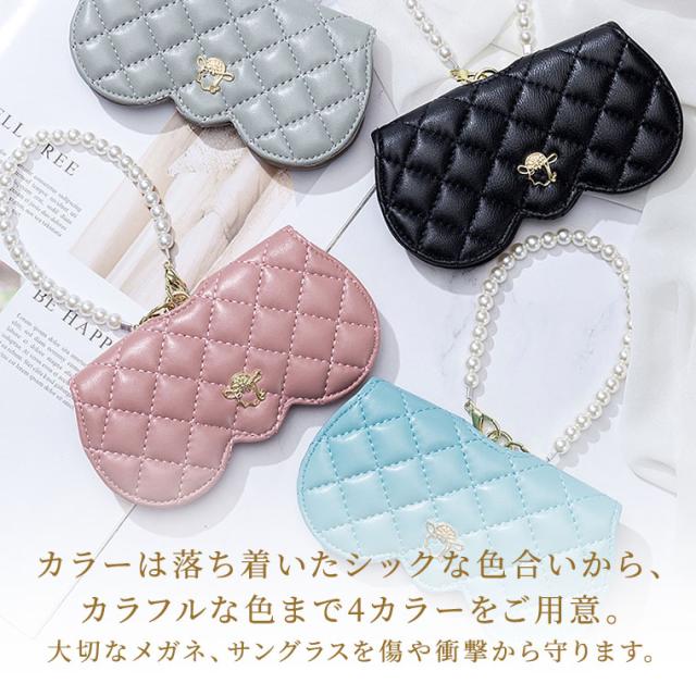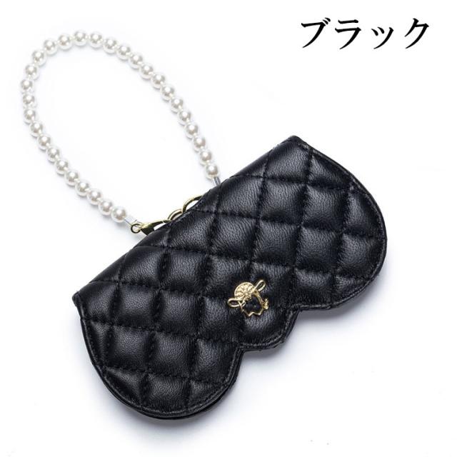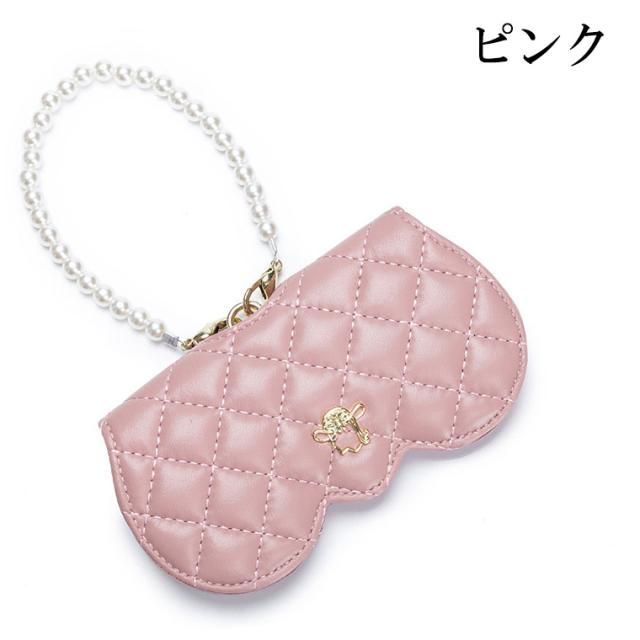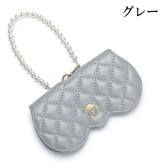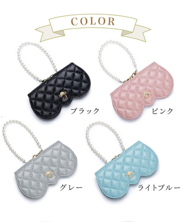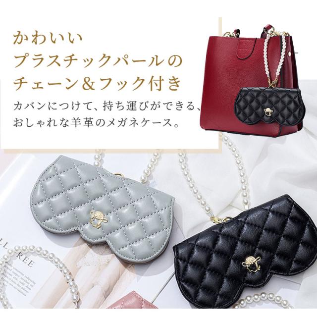 メガネケース おしゃれ 眼鏡ケース 羊革 本革 大人 かわいい リム コンパクト シープスキン キルティングデザイン プラスチックパール チェーン付き cld306
