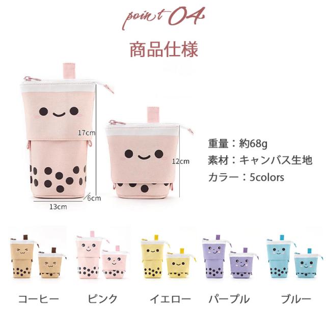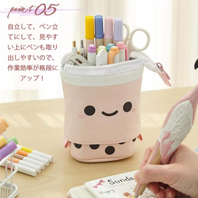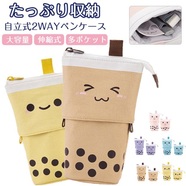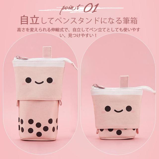ペンケース 筆箱 立つ タピオカ かわいい ミルクティー 筆入れ 学生 大容量 男の子 女の子 社会人 ふで箱 文房具 伸縮 自立スタンド型 多機能