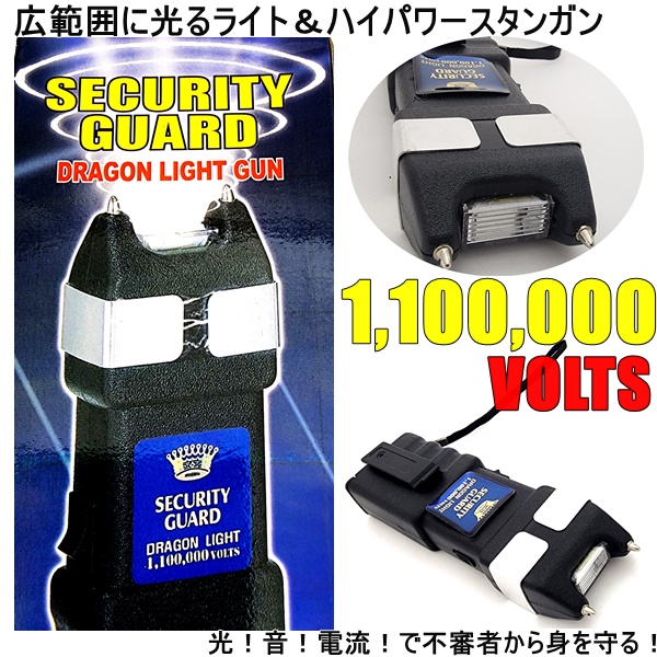 スタンガン 護身用 1,100,000V 広範囲ライト付き セキュリティーガード 送料無料 セキュリティー 9V アルカリ電池 別売り ドラゴンライトガン 110万ボルト