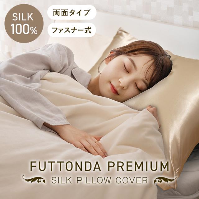 シルク 枕カバー シルク100% 両面タイプ ファスナー付き やわらかい 手触り 19匁 軽い 乾きやすい 静電気防止 選べる2色 シャンパンゴールド ピンク ふっとんだプレミアム Futtonda Premmium 寝具 まくら まくらカバー インテリア
