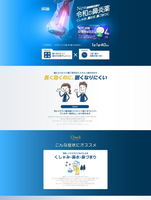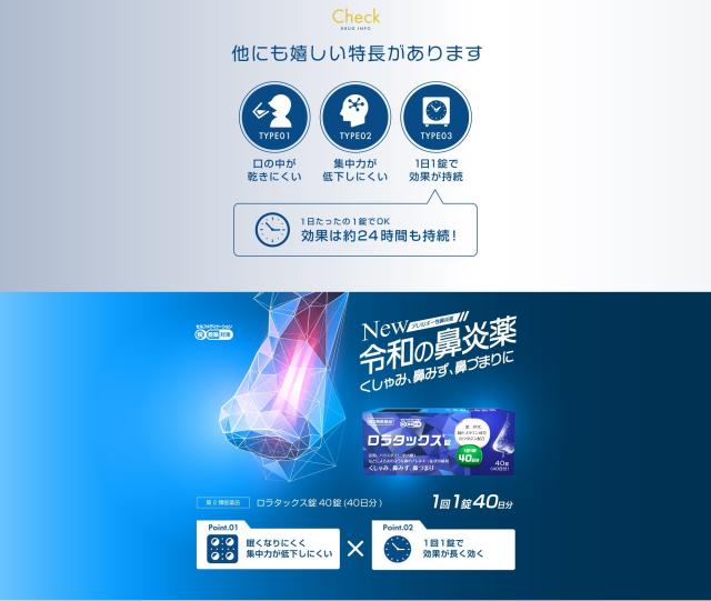 ● ロラタックス 錠は、第二世代の抗ヒスタミン成分(ロラタジン)を有効成分とするアレルギー専用鼻炎薬です。