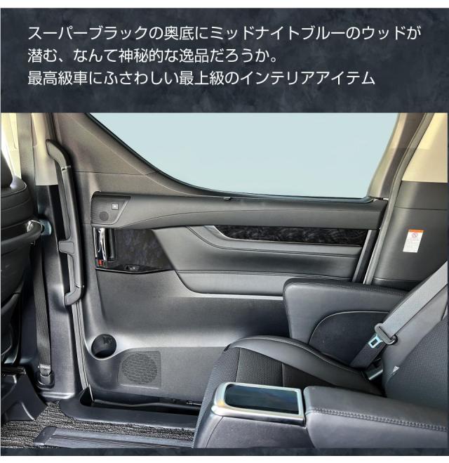 30系 アルファード / ヴェルファイア用のサイドドアインナーパネルです。 スーパーブラックの奥底にミッドナイトブルーのウッドが潜む<METAL WOOD>の圧倒的高級感。 他と一緒じゃ嫌なあなたへ。 専用設計でしっかりフィット。 傷、衝撃からサイドドア内側のハンドルまわりを保護する効果もあります。 取付は両面テープで貼りつけるだけの簡単装着。 |