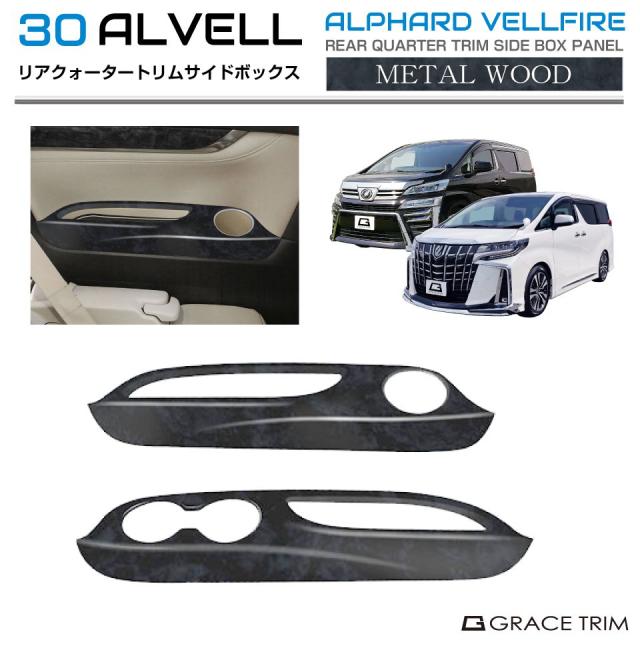 30系 アルファード ヴェルファイア リアクォータートリムサイドボックスカバー メタルウッド 2pcs AV30-INW-R01| インテリア リアシート ボックス コンソール パネル ガーニッシュ カバー パーツ インパネ カスタム 内装 室内 ウッド トヨタ アルヴェル